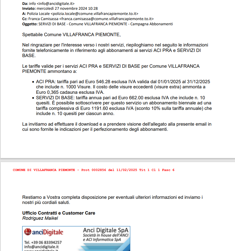 Oggetto: RINNOVO ABBONAMENTO ANCI RISPONDE E ANCIDIGITALE PER L'ANNO 2025